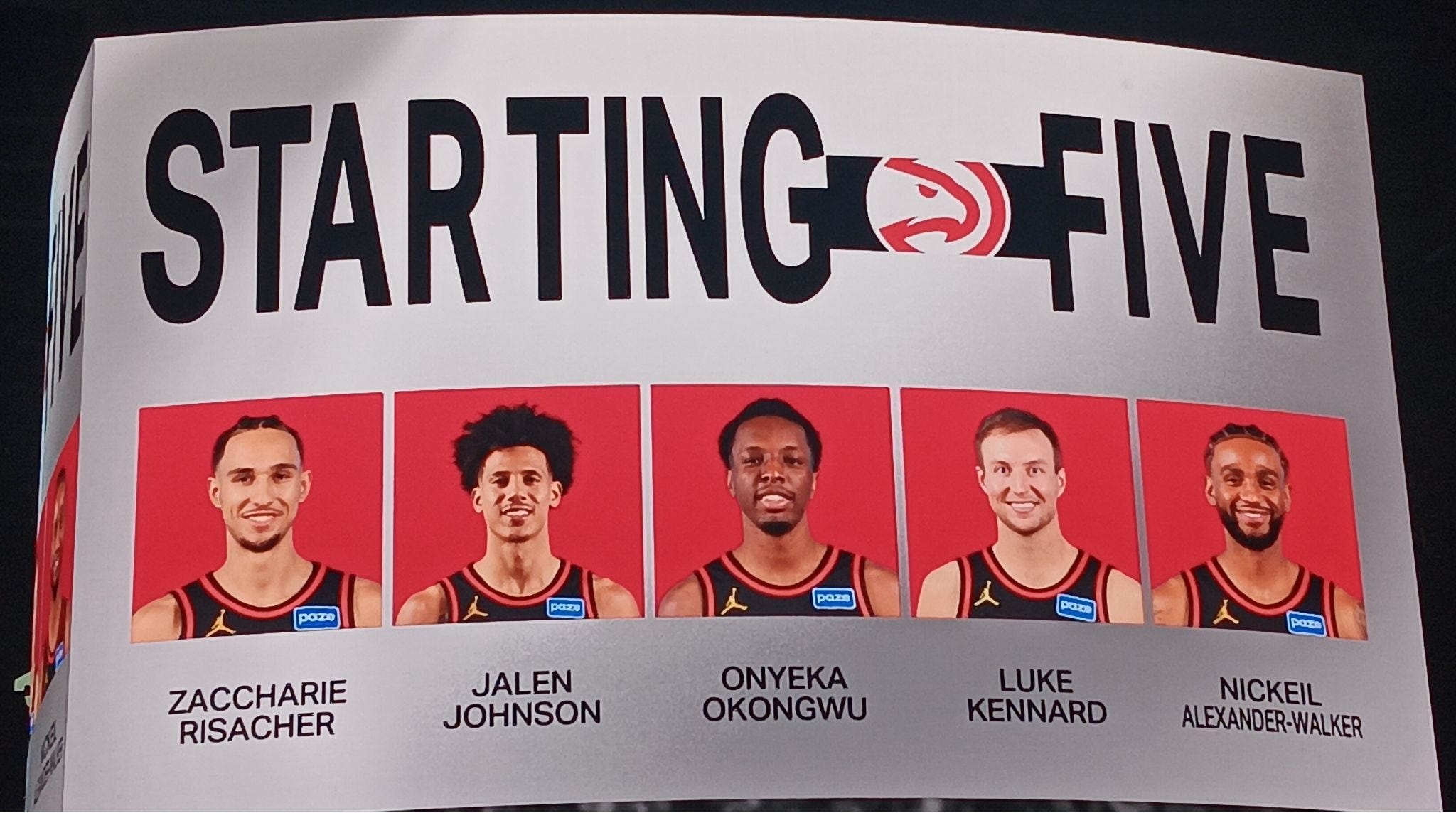אטלנטה פותחת עם חמישייה גבוה, אתלטית ומגוונת. הם למעשה פותחים עם חמישה פורוורדים במשחק הנ.ב.א של העידן החדש.