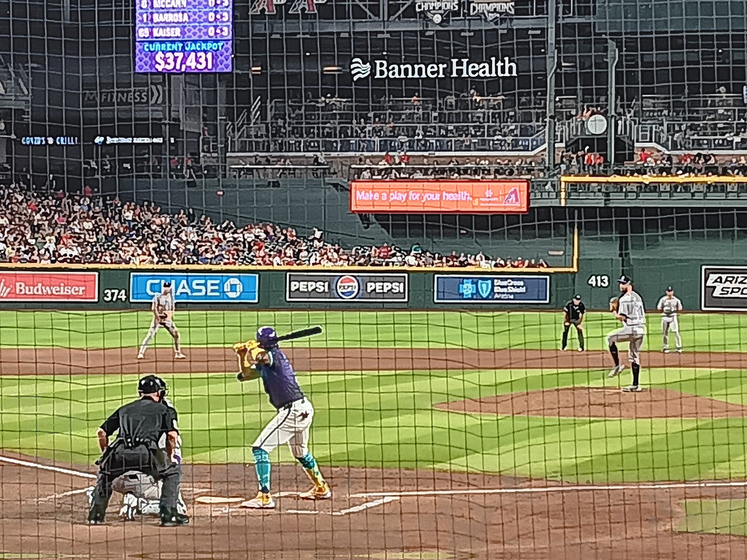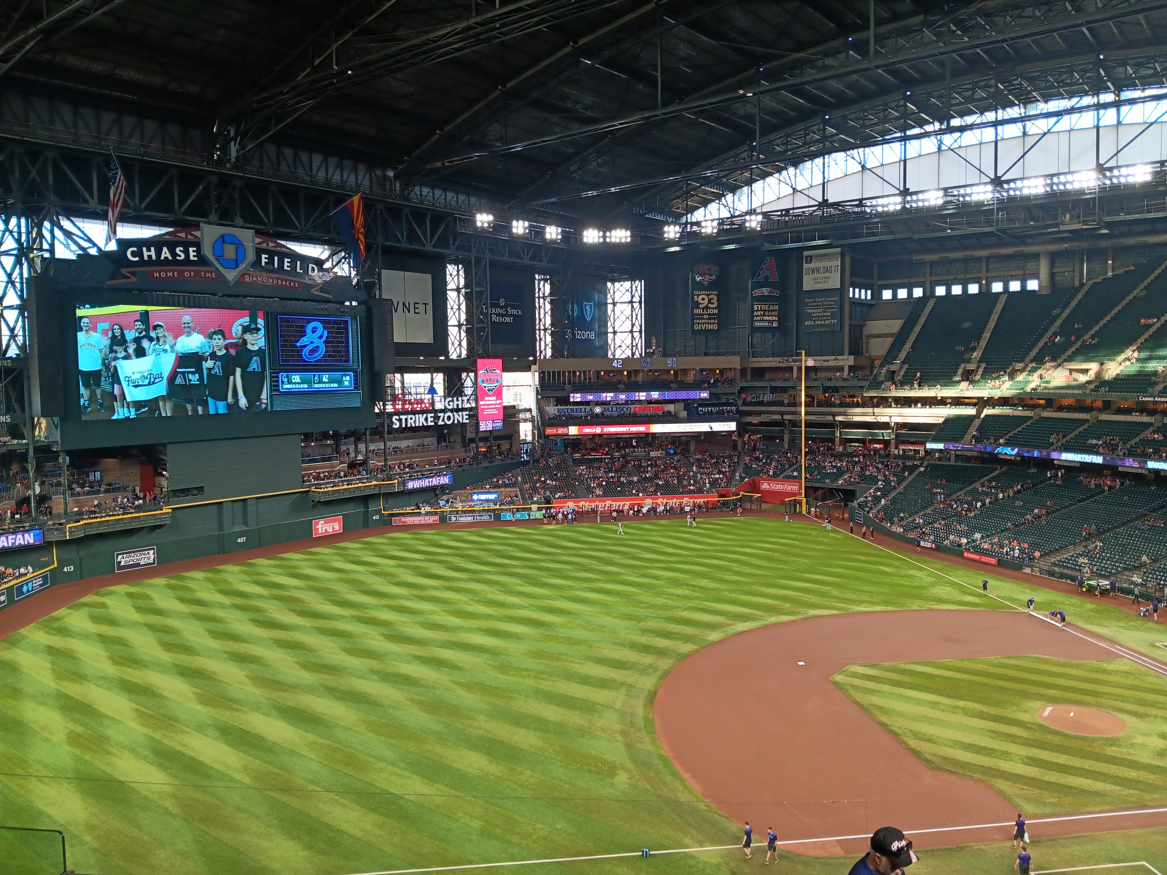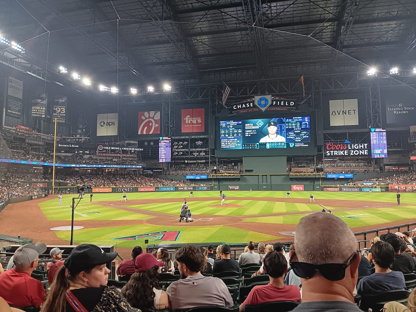 אז בערב יום חמישי, קיבלתי את ההפתעה הנעימה לפתיחת הסופ"ש ובסוף יום עבודה של שישי, עשיתי את דרכי לאצטדיון הבייסבול בדאונטאון פיניקס.